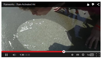 丘奇在网上看到一些演示防水涂料神奇作用的视频,产生灵感。他用透明防水涂料在西雅图街道上绘制了一系列图案,这些图案晴天看不出来,下雨时,涂料部分不沾水,颜色不变,周围的地面沾上水,颜色变深,图案就显现出来。