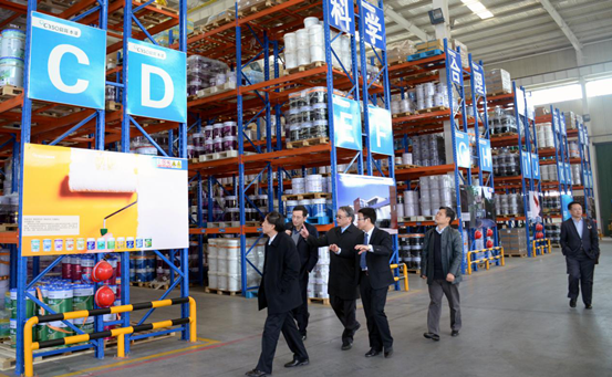 与会专家到晨阳水漆生产车间和技术中心展厅实地考察